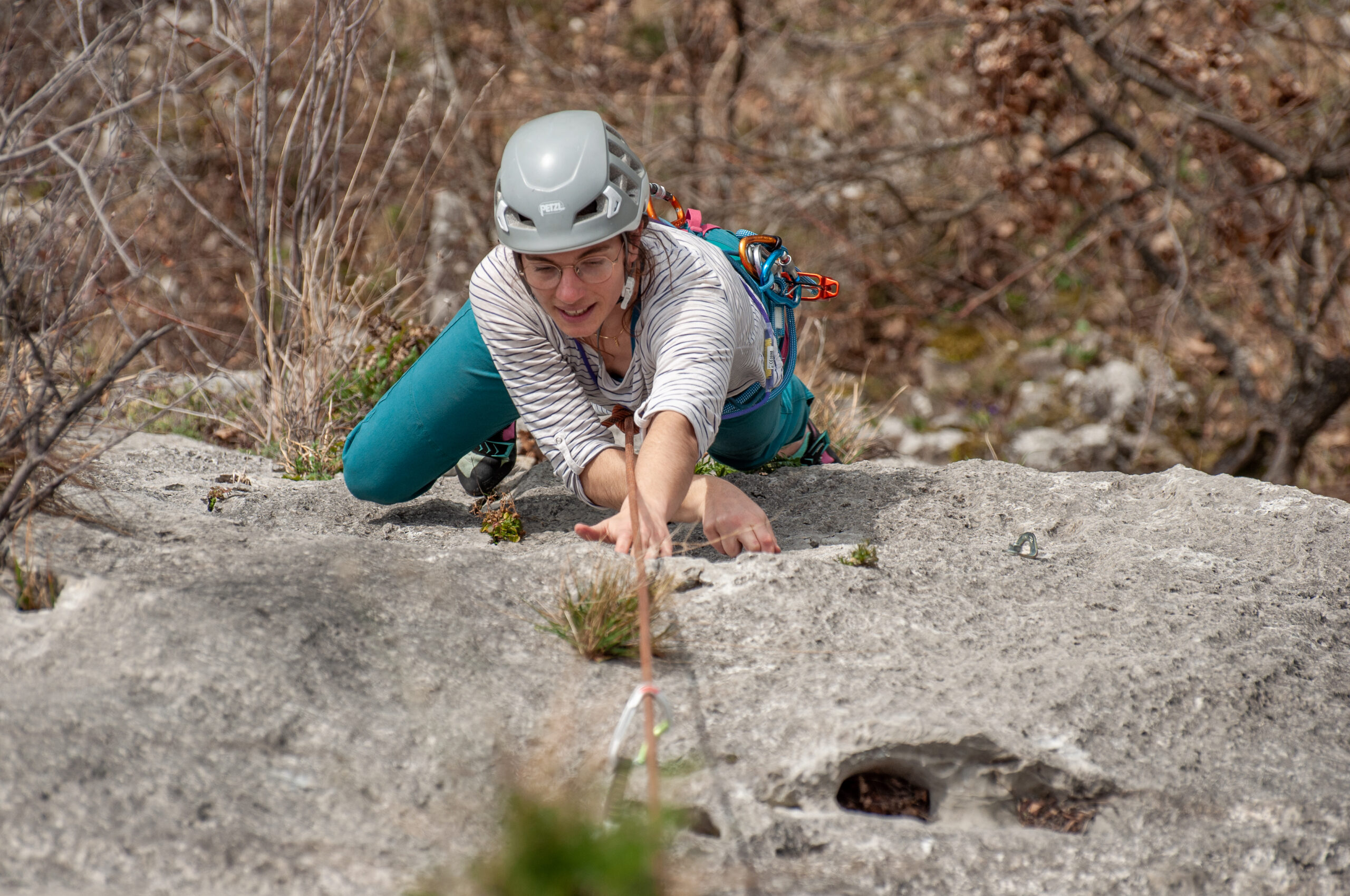Apprentissage de la grimpe en tête : gérer son mental et le clippage des dégaines.